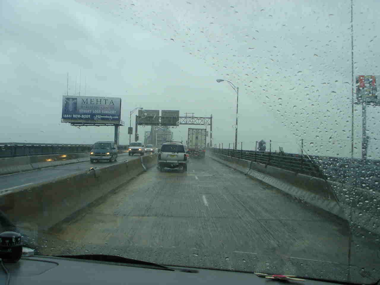 雨の中、Goethals Bridgeを渡ります。 |